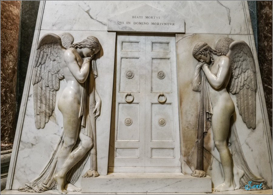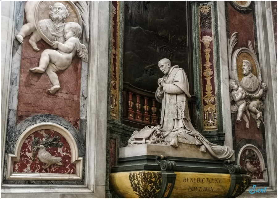 教宗本篤十五世(拉丁語:Benedictus PP. XV,1854-1922)之墓,由Pietro Canonica作於1928年。本篤15世跪在象徵第一次世界大戰的棺木上虔誠祈禱。棺木外鑲嵌的橄欖枝突出了他的和平願望。