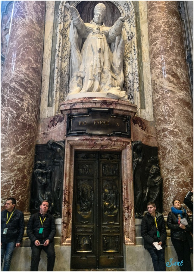 鑽進教宗庇護八世紀念碑下方是「聖器珍寶館」入口,額外收費,只能觀賞、禁止拍照、攝影,只有這尊聖彼得像可以拍。