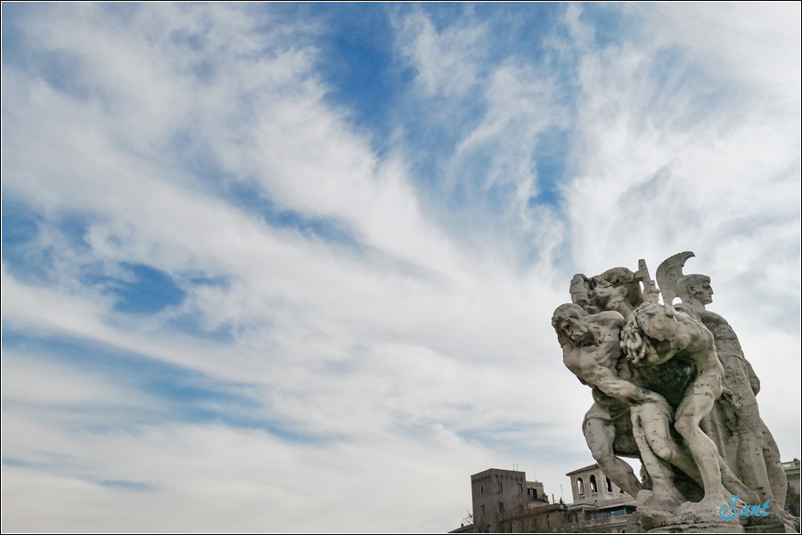 雖然這二天羅馬天氣很差,二隻狼昨天為了小狼要買ZIPPO打火機,沒帶傘就出洞,被水扁的很狼狽,特米尼車站入夜前的天空反而有一種魔幻之感,很美是吧?