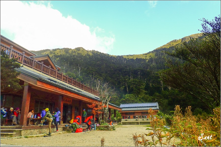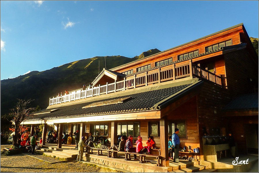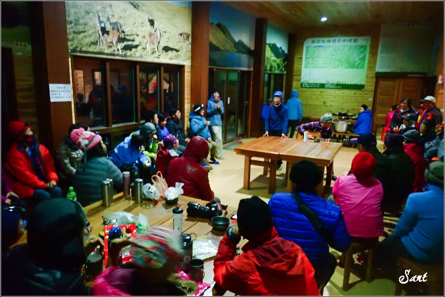 客滿的山莊裡頭的山友們通通以為她們太晚進登山口,只有老狼忍不住表達關懷之意(因為其中一位年輕美咩長的實在令狼心動的漂亮,就像第一次見到小紅帽心臟會跳的感覺),美咩說她們早上8點20進登山口(晚我們約30~40分鐘),過了福雲宮之後發現走到路的盡頭,「沒路了!」,她們退回到福雲宮,擔心0.3K開始施工,所以走高繞閃過施工段,退回到屯原登山口,大家商量該怎麼走,她們走高繞段進能高越嶺道。老狼:我的老天鵝!