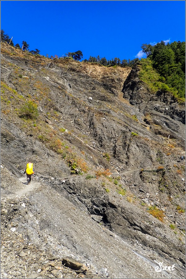在2015年,一個登山團體經過這處大崩塌時,他們的隊長一時尿急,就在大崩塌處小解,就那麼剛好被落石砸落到山谷,所以此地不宜久留,應觀察上方坍方狀況,速速通過,切勿心存僥倖。