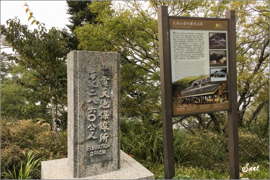 天池山莊在日據時代興建了「能高駐在所」,面對天池山莊,昔日的能高駐在所的入口是在天池山莊正面前方約30多米處,由二層石頭堆砌的大平台,由入口處就能顯出駐在所的氣勢(也讓原住民懼怕,就像古埃及興建巨大神殿,就是要讓神殿的氣勢讓人民懼怕一般)。