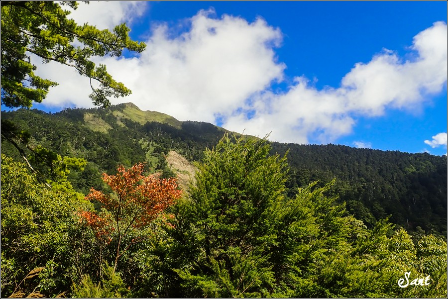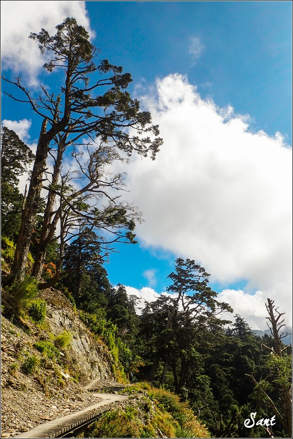 小紅帽非常擔憂老狼的腳程跟不上商業團,果然他們行進速度灰熊緊,讓老狼沒啥時間邊走邊拍,只要停下腳步按一張,立馬落後隊伍數十米,還好這段到天池山莊的能高越嶺道滿平緩好走,老狼還能掛上tourbo追上隊伍,只是追趕的會讓自己有點喘(菸癮的苦擾)。