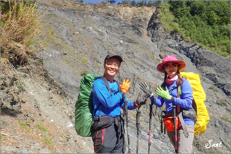 往後一路上所碰到急忙想趕出山的山友們每個都很關切到底需不需要高繞,既然施工單位已經進駐、擺好陣勢,我們當狼不知道施工單位何時開展,只能建議嘗試闖看看吧,能闖過關算賺到,闖不過也不是我們的錯,只能祝福她們的運勢要夠強。