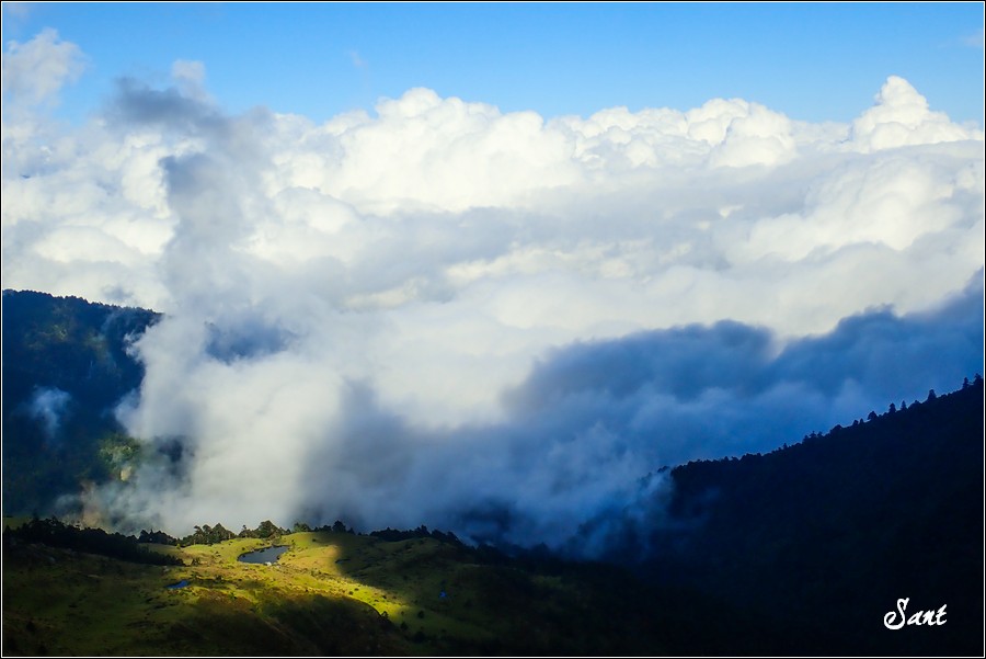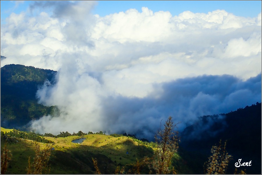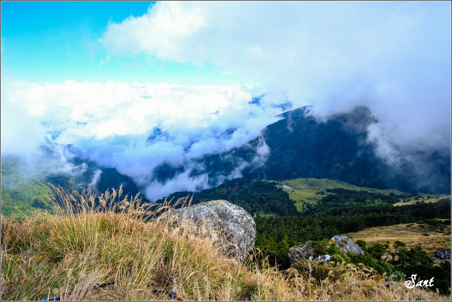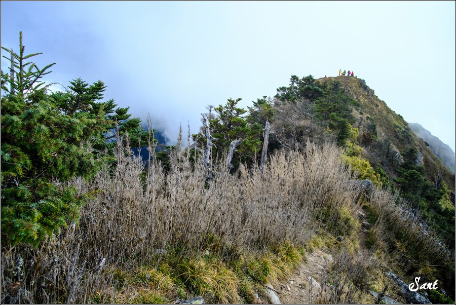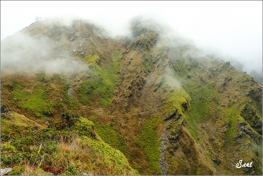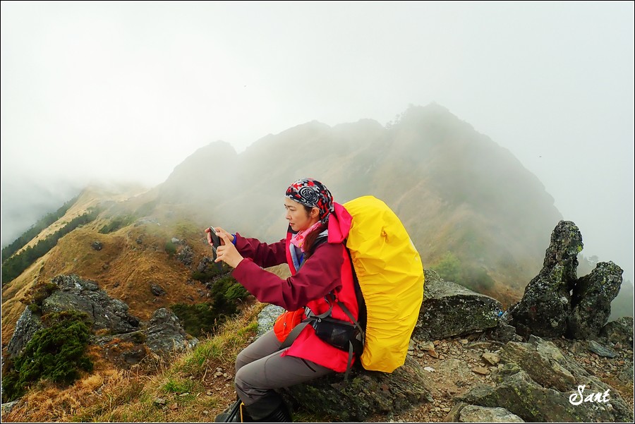 13:12 過午,山上起雲了,雖然不知道還得拼命喘多久,心裡頭只有擔憂能高山會不會白牆,因為隊上有個咩ㄚ沒事取名叫「白薔薇」xd