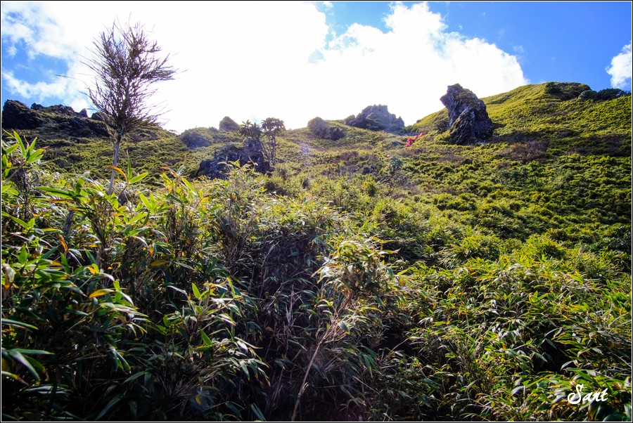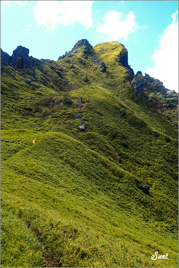 這時,景鴻從後面趕上我們,景鴻一直都在隊伍前面,剛才是停下來嗯嗯,才會難得與我們落後的混在一起。跟景鴻一起搭配沿途確認布條,我們三位走在一起。