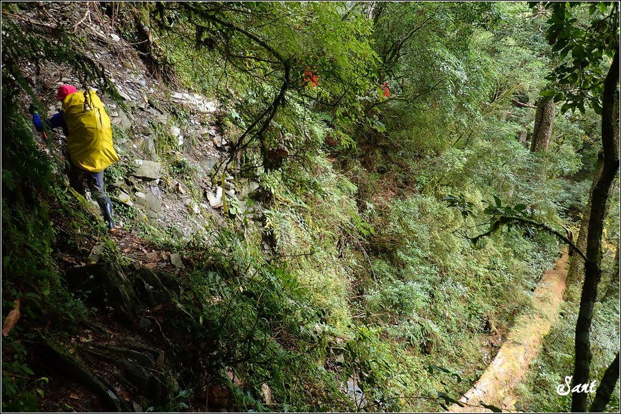 08:53 老狼當時一度懷疑隊長是不是帶錯路,因為這段根本不算是路徑,沒路啊,走的很靠北,山壁的土石鬆垮垮的,不小心踩到想逃脫的踩點鐵定跟著摔下溪谷!