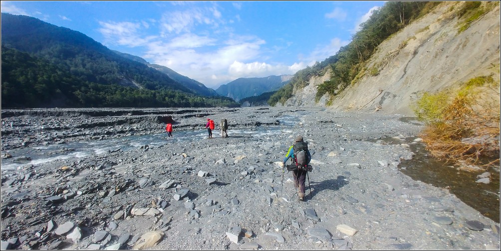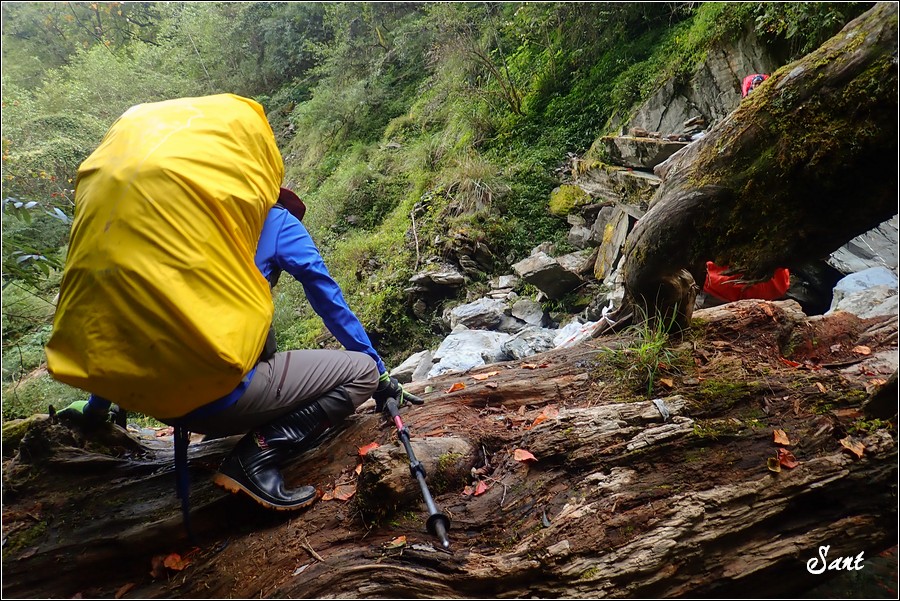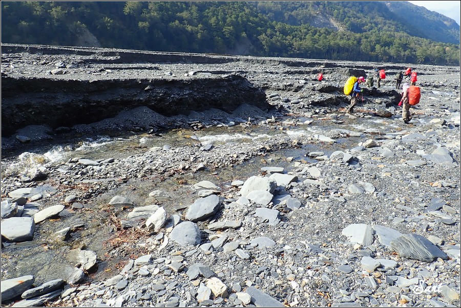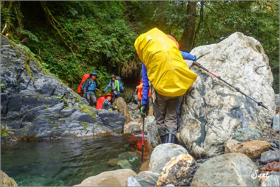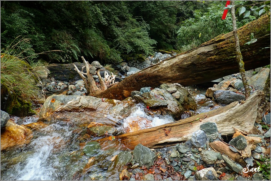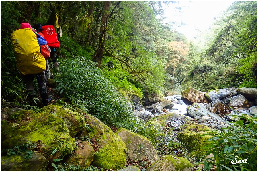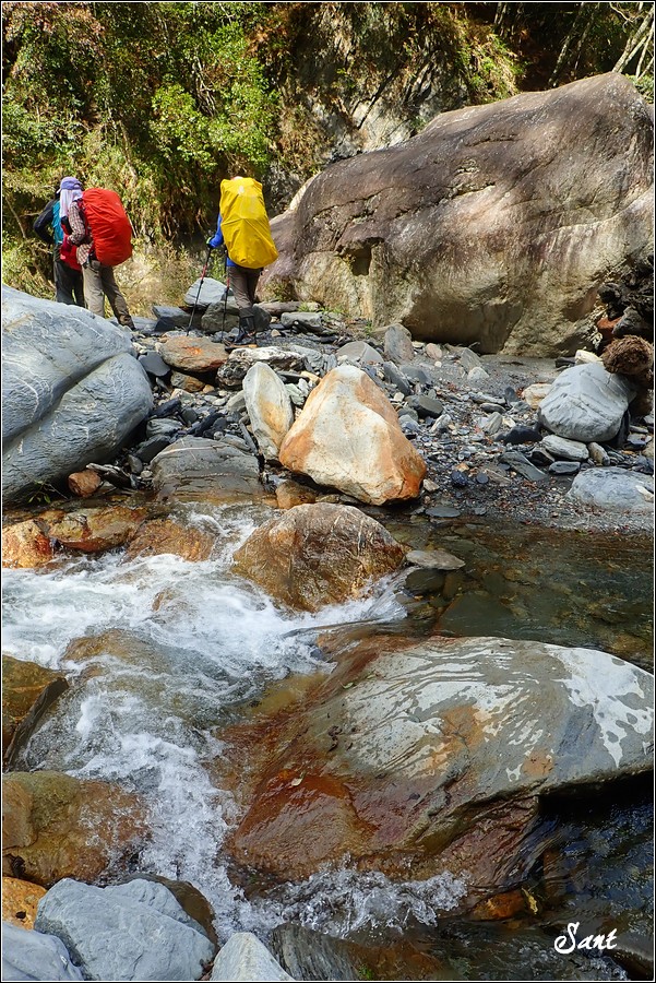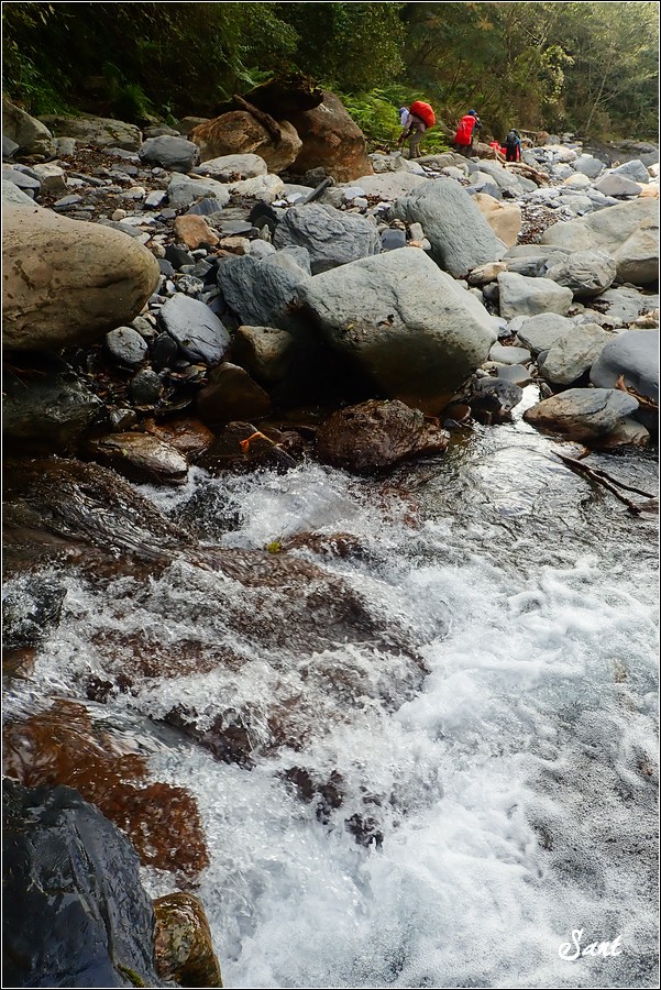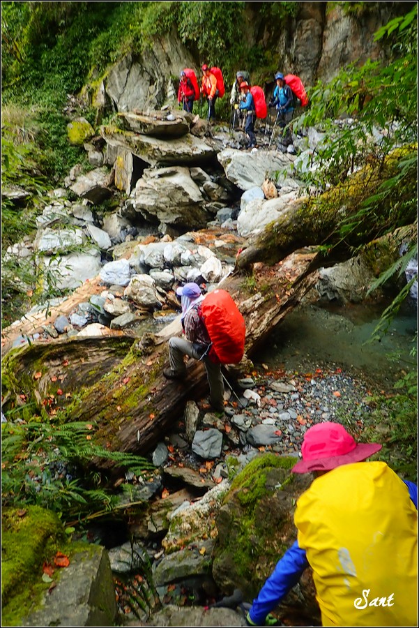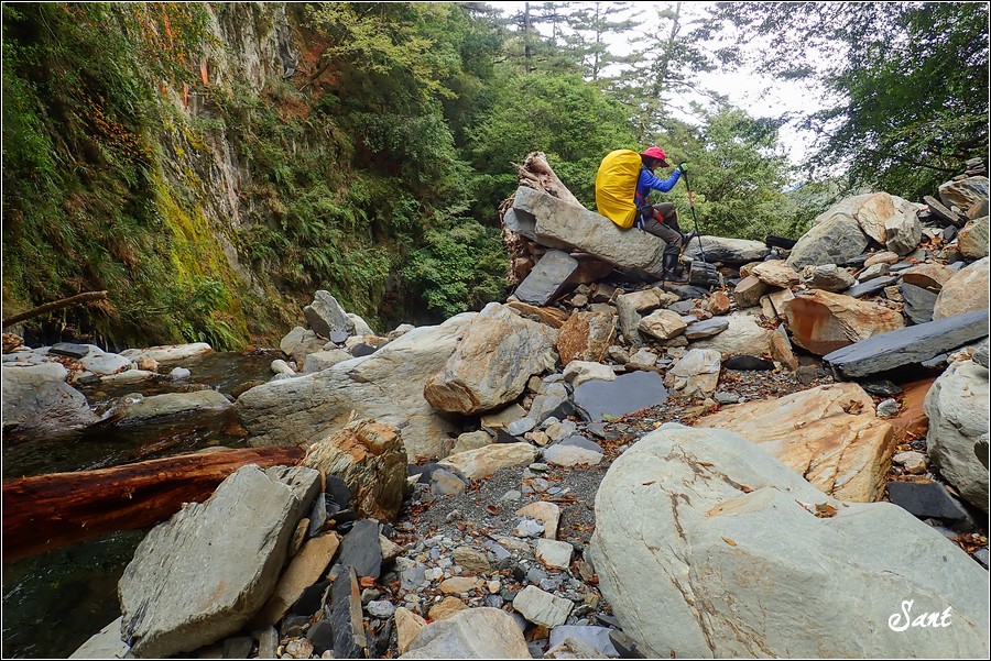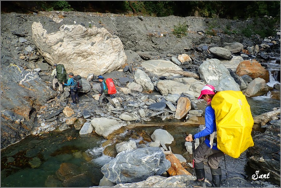 據聞金杏真路已經毀損嚴重,目前為乾季,溪水變小,所以隊長繼續帶我們走溪谷。
