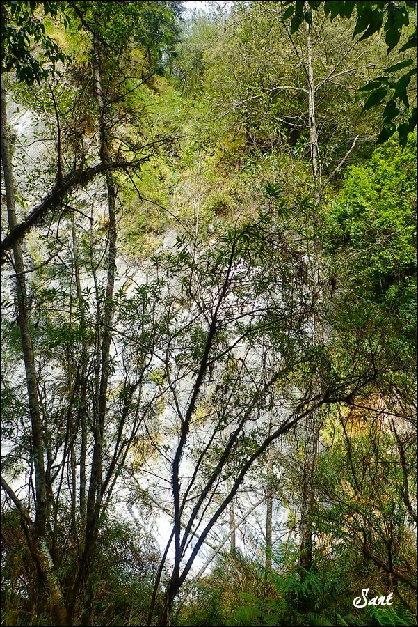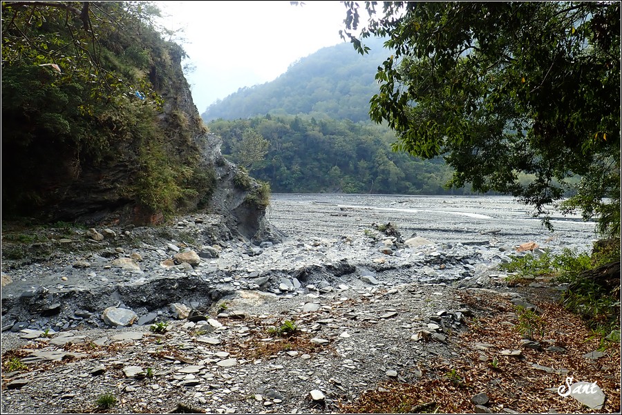 原來剛才覺得眼前一片白茫的現象,是溪谷上游大崩壁所造成的光線折射現象,讓老狼心裡的疑惑解盲了。
