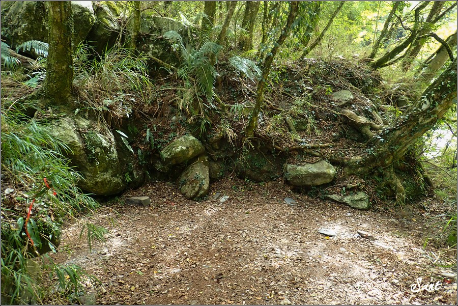 12:30 經過一處位在萬大南溪支流旁的小營,山友標註為「石壁營地」。