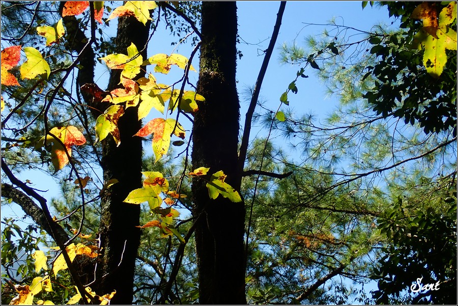 ~今年暖冬,楓葉大抵都是這樣子,未紅就落葉了!