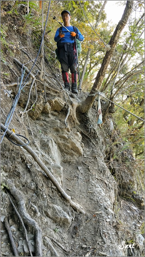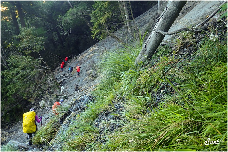 07:12 大崩塌已經逐漸逼近山徑,右側山壁非常陡峭,不久的將來這一段勢必會從大崩塌前直接新開一條路徑閃過,就是前幾張Google Earth老狼所劃的黃線。