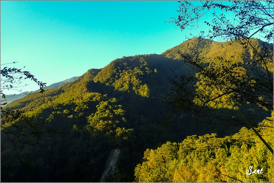 06:15 左側下至萬大南溪河床「溪底營地」,對岸是「奧萬大三怪」~室呂木山的登山口。烏帽子山會從「溪底營地」直接溯溪往南抵達登山口。