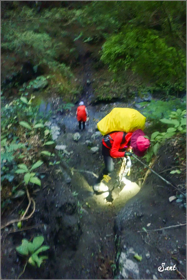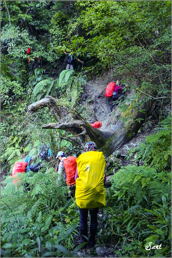 過溪後陡上,過了不久,隊長發現我們走錯路徑,因為前方沒路了。