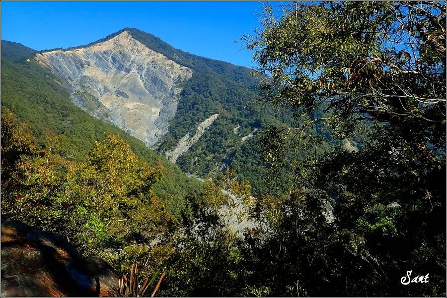 07:14 前方隊伍仍堵住,反正也是閒著沒事,往西南展望山頭,它就是「奧萬大三怪」~室呂木山,赫赫有名的干卓萬群峰就藏在室呂木山背後不遠處。