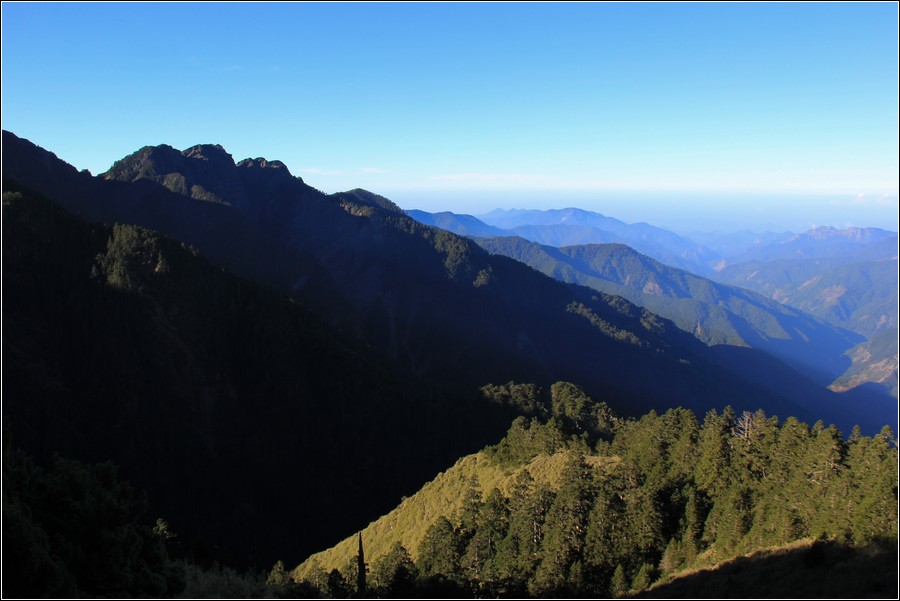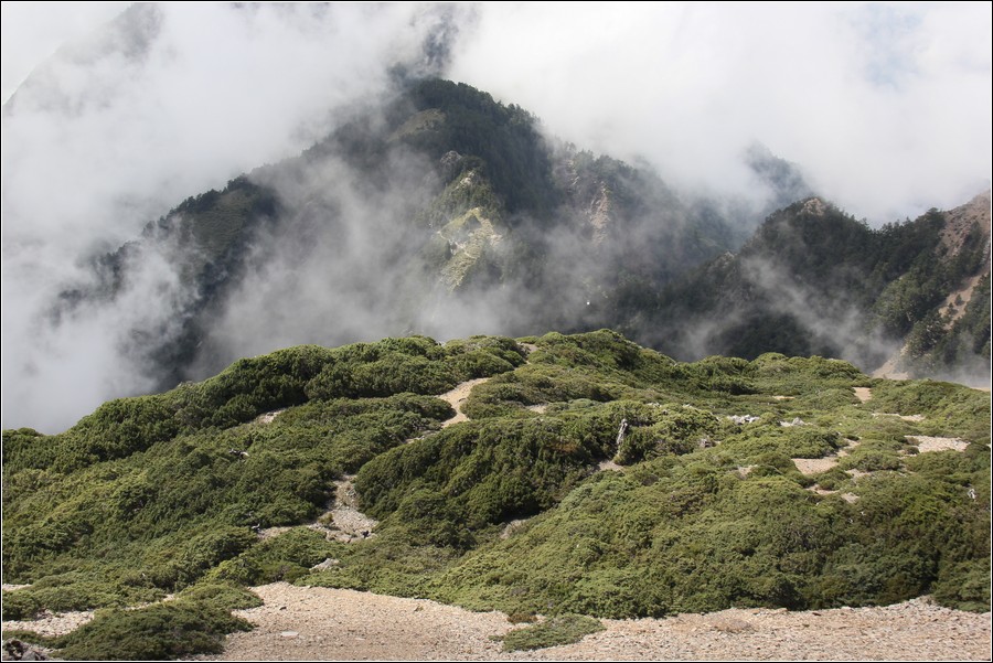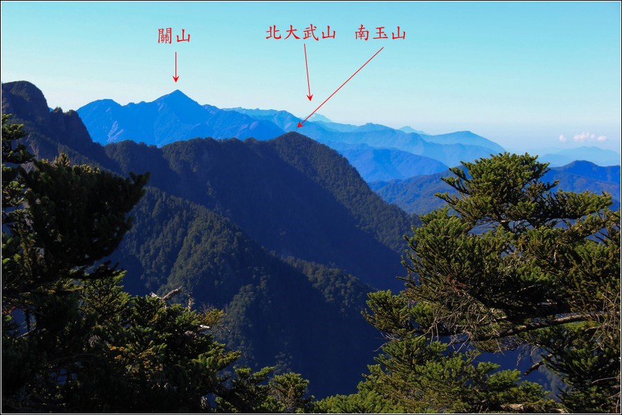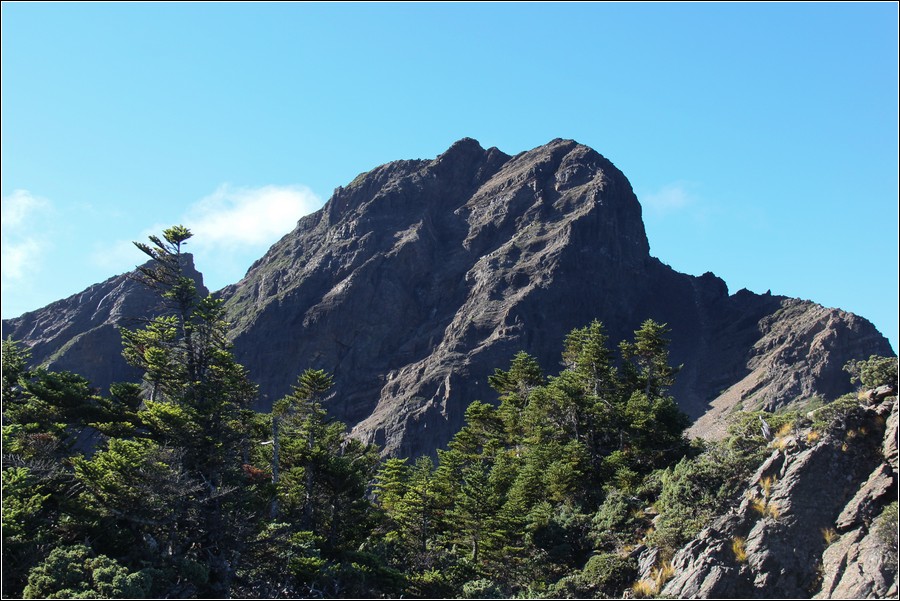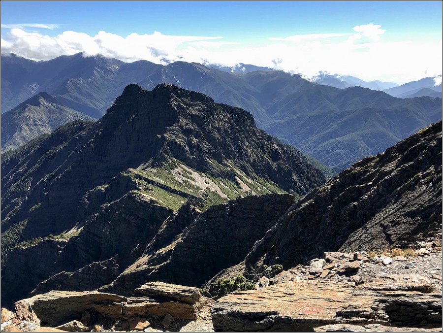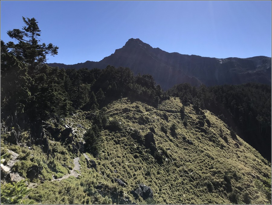 過鳳尾岩之前的空檔往北面眺望玉山北峰