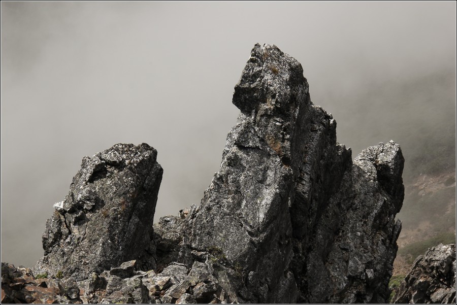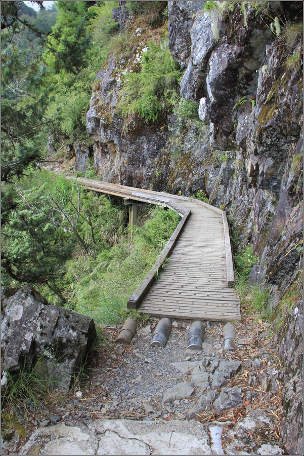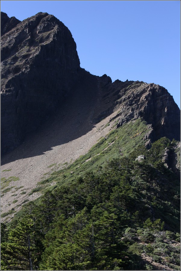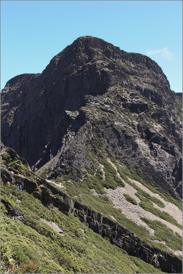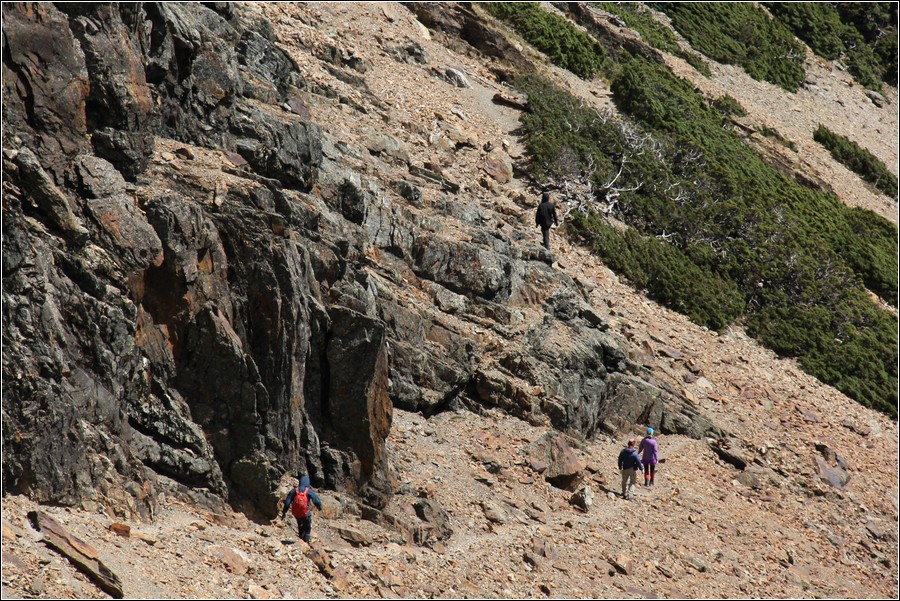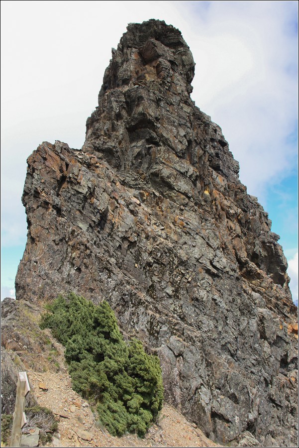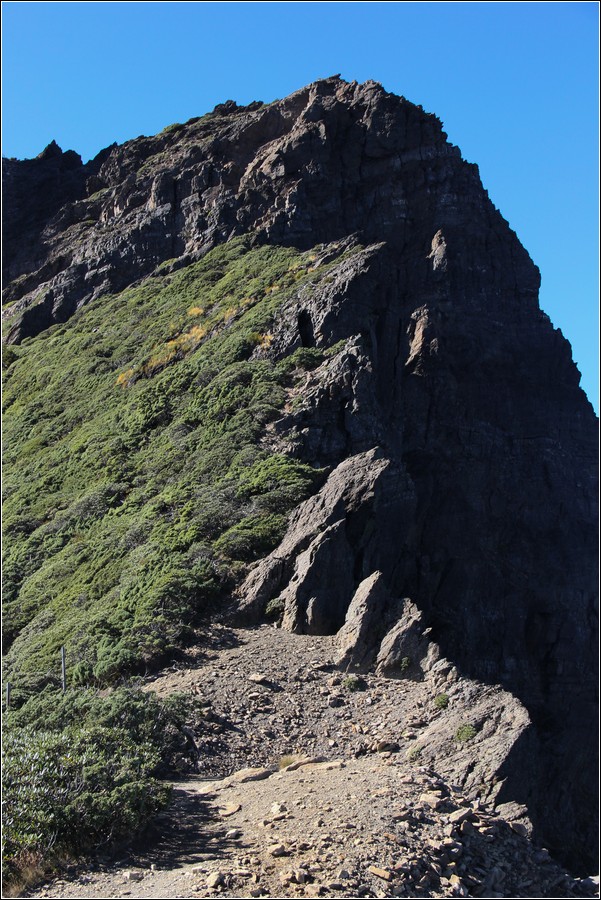 鳳尾岩,側邊的碎石坡相當陡滑。