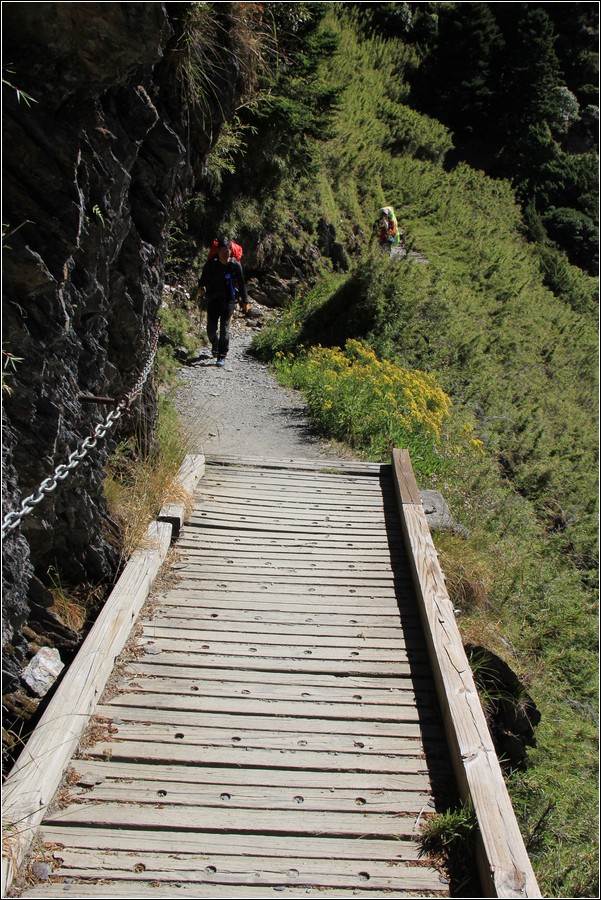 每年有許多中外山友造訪玉山,下山途中總會與上山者碰面。