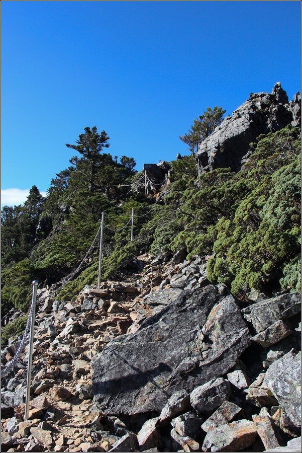 排雲山莊往玉山主峰的之字路徑,相當陡,路徑又很長。