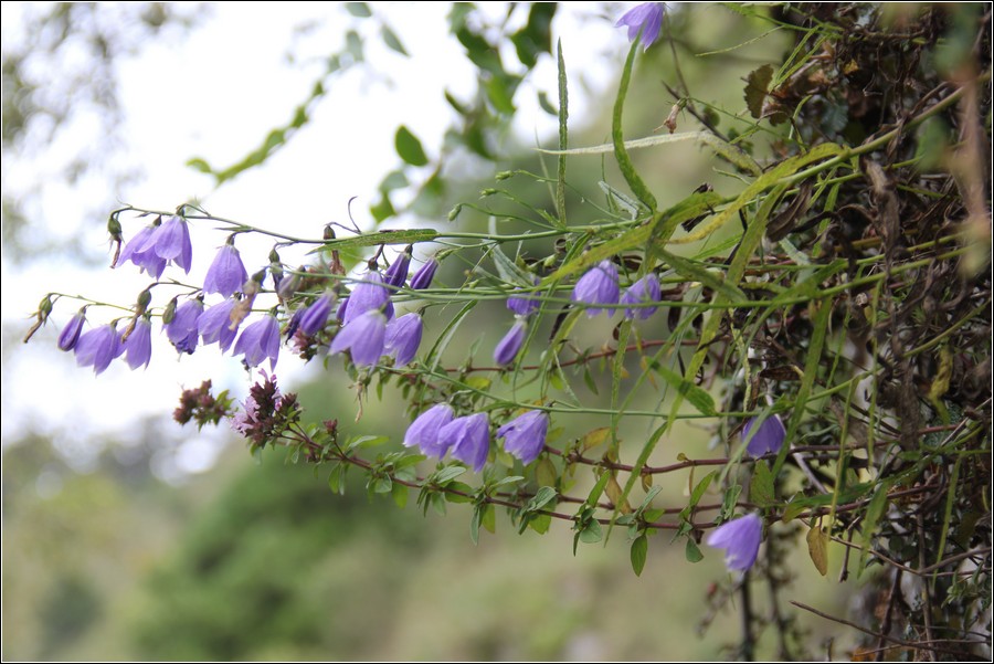 玉山沙參,分佈於海拔 2,500~3,000公尺,花期 6~11 月,盛花期為 8~9 月,一株有數朵的吊鐘花。