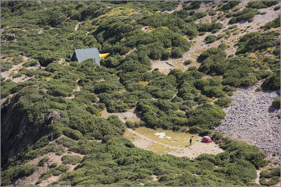 圓峰山屋來了新的山友,他們在圓峰山屋營地搭帳。