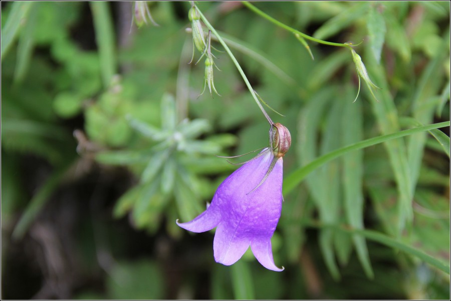 高山沙參,分佈於海拔 3,000~3,900公尺的高山上,花期 6~10 月,盛花期為 8~9 月,一株一花。