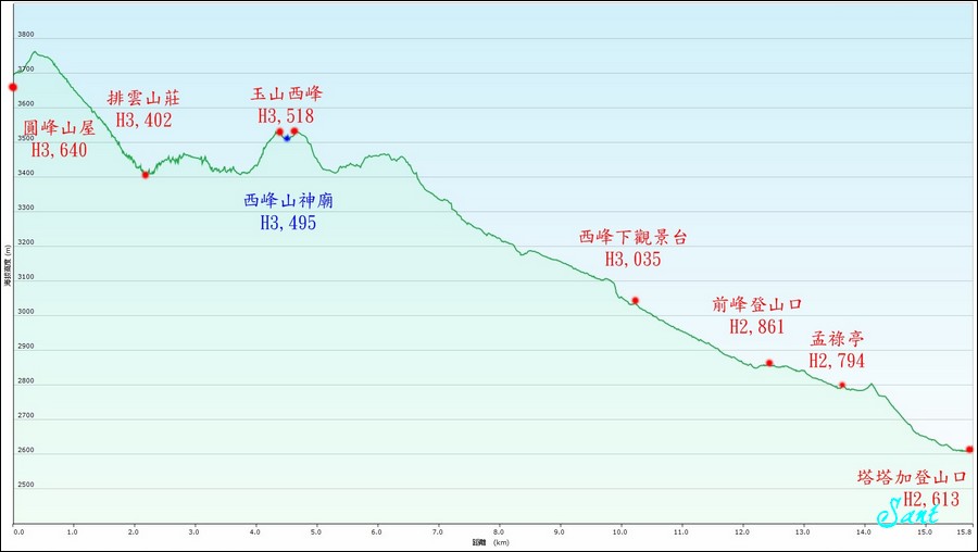 距離:人體柴車輕裝15.8K(包含輕裝玉山西峰來回)