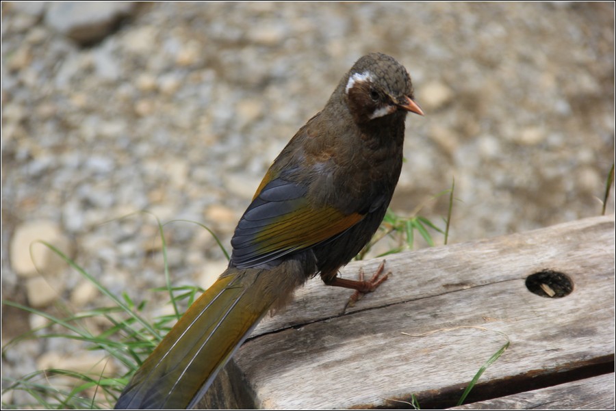 金翼白眉,知名的垃圾鳥,因為牠什麼食物都吃,在塔塔加往排雲山莊沿途經常可見,不大懼人。